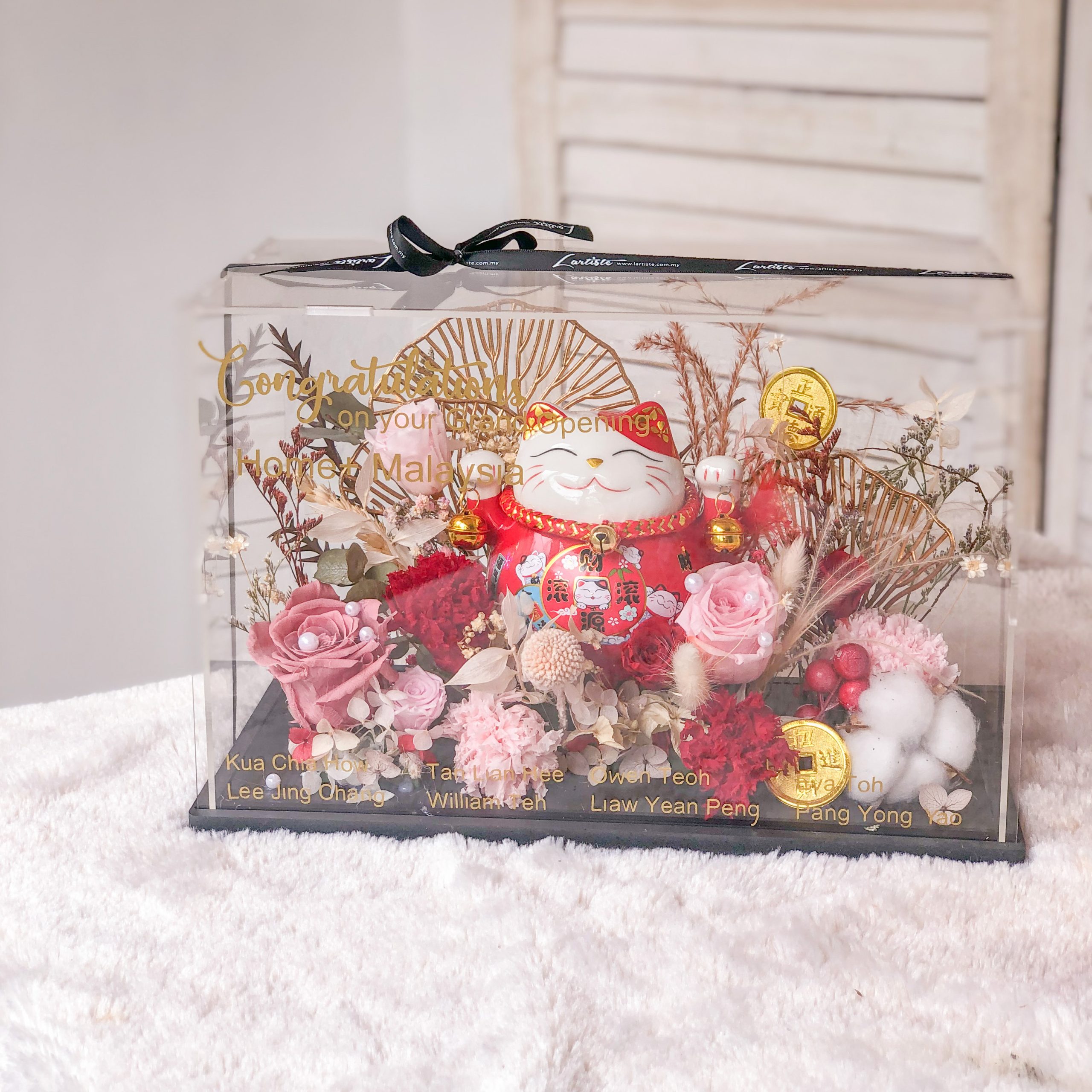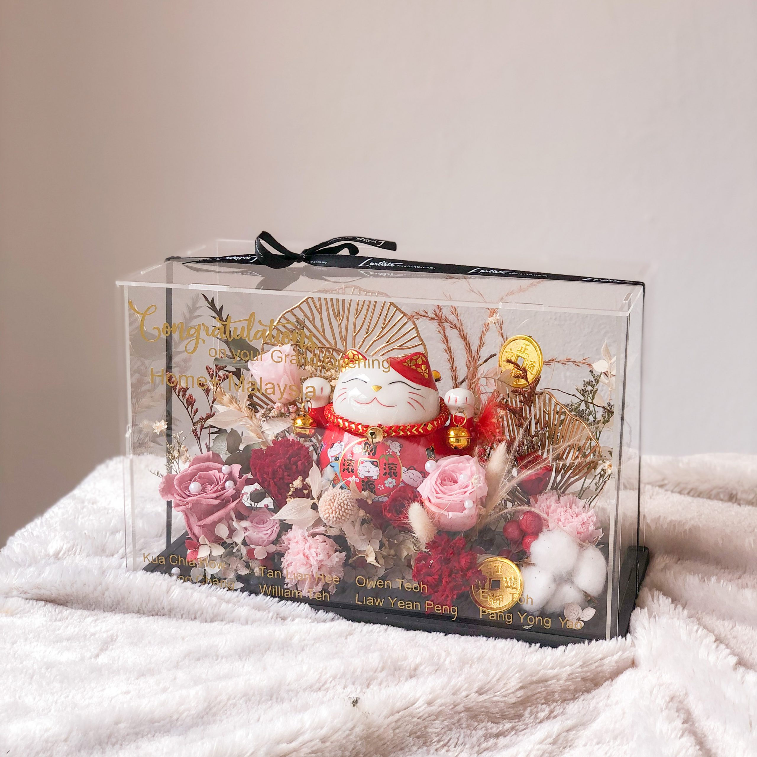 This beautiful Acrylic Box – L size 03 (30cm x 20cm x 15cm) is perfect to give as a table decor on special occasions like birthday, shop opening & Chinese New Year.