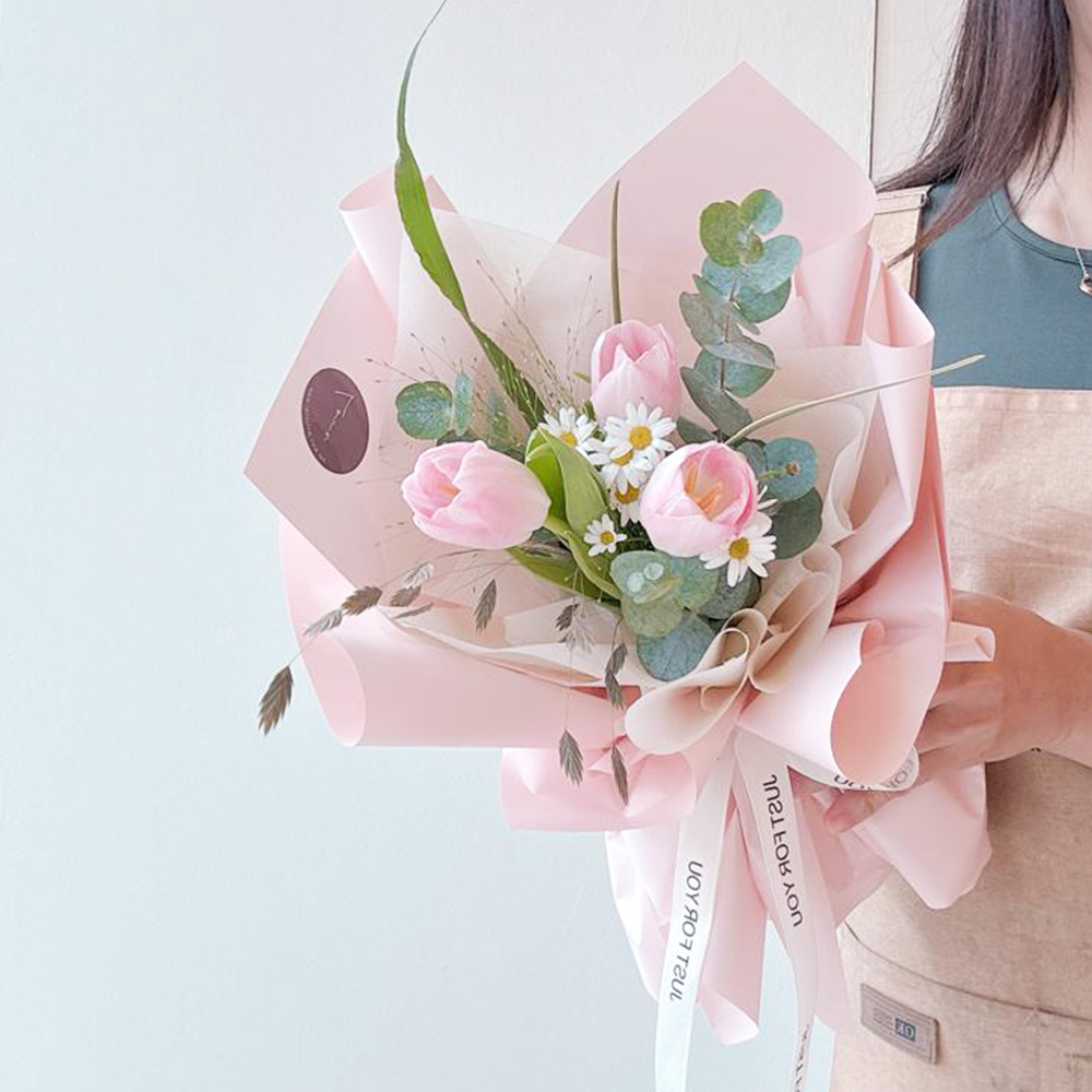 Pink Whispers (Tulips) – Celebrate sweet affection with this soft and elegant bouquet, thoughtfully arranged to highlight the natural charm of these beautiful flowers.
