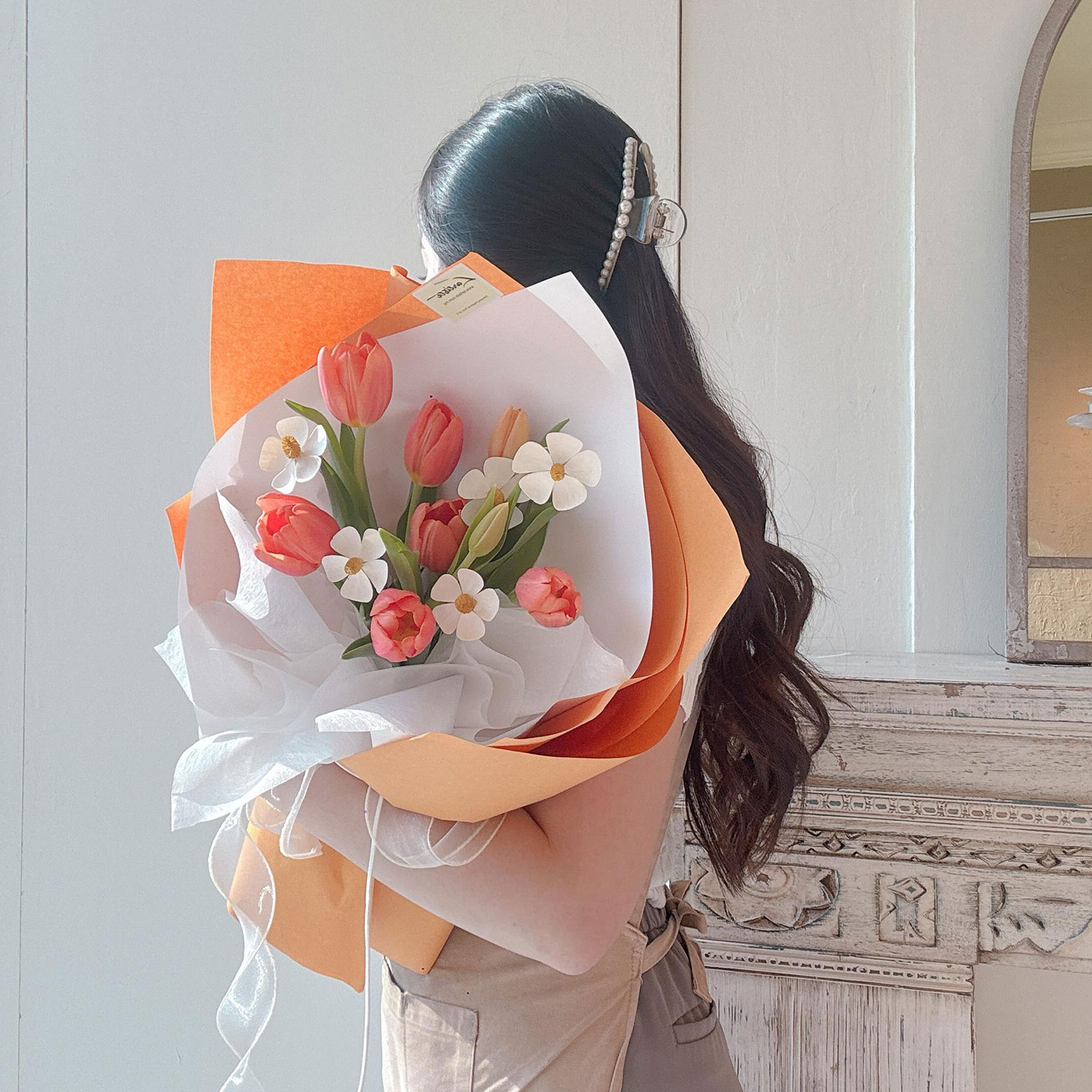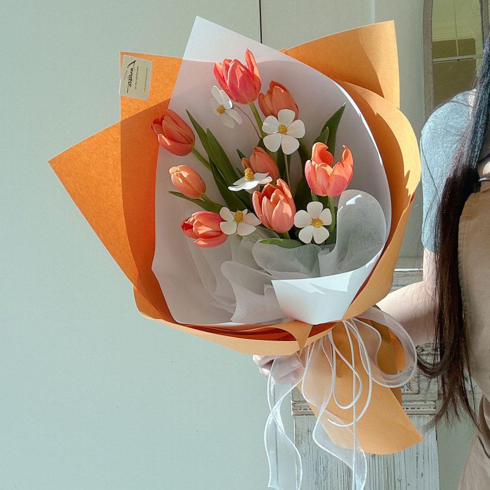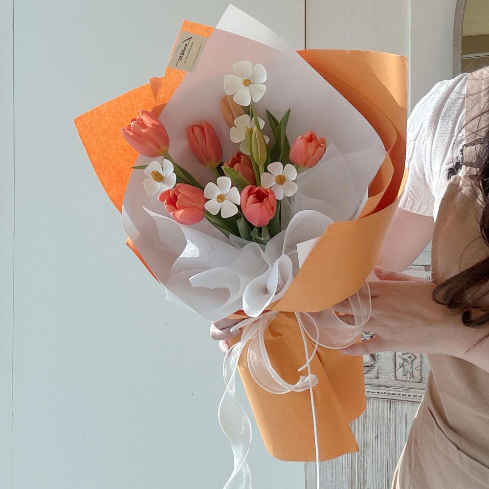 Tulips Bouquet 01 – A vibrant burst of pure sunshine, this fresh bouquet is an abundant and joyful gathering of brilliant orange tulips.